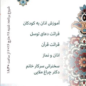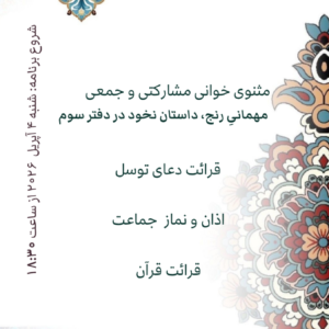 Friday – Du’a Nudba will be broadcast online at 7:30 AM on the Kanoon Telegram channel. In these days, when we need hope, patience, and unity more than ever, your presence will be a source of strength and comfort.